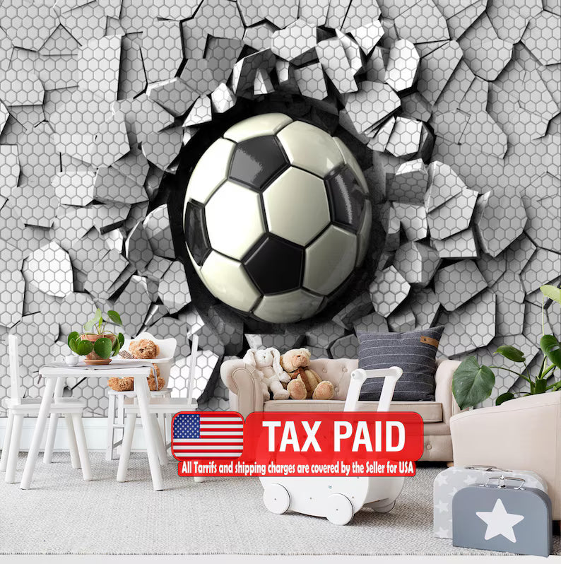 3D Football Wall Mural, Soccer Art Print, Peel & Stick Wallpaper