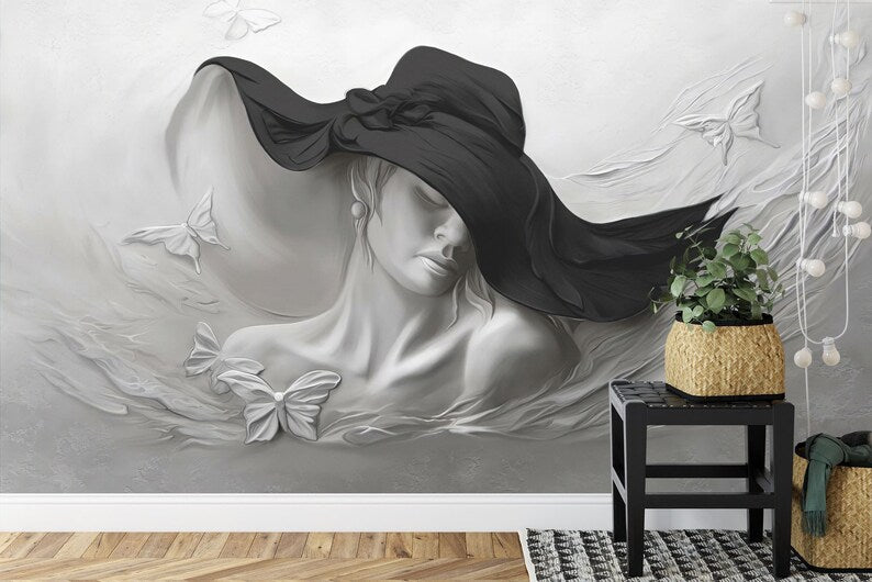 3D Woman Face Sculpture Wallpaper Mural, Easy-Install Peel and Stick Wall Decal
