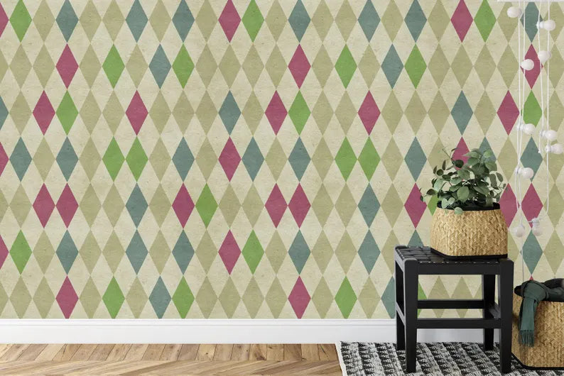 70s Geometric Wallpaper Mural: Retro Diamond Pattern, Peel and Stick