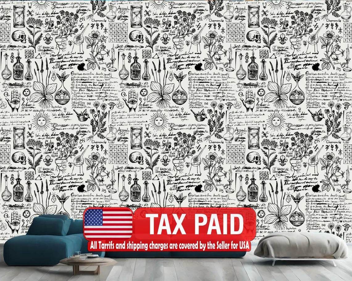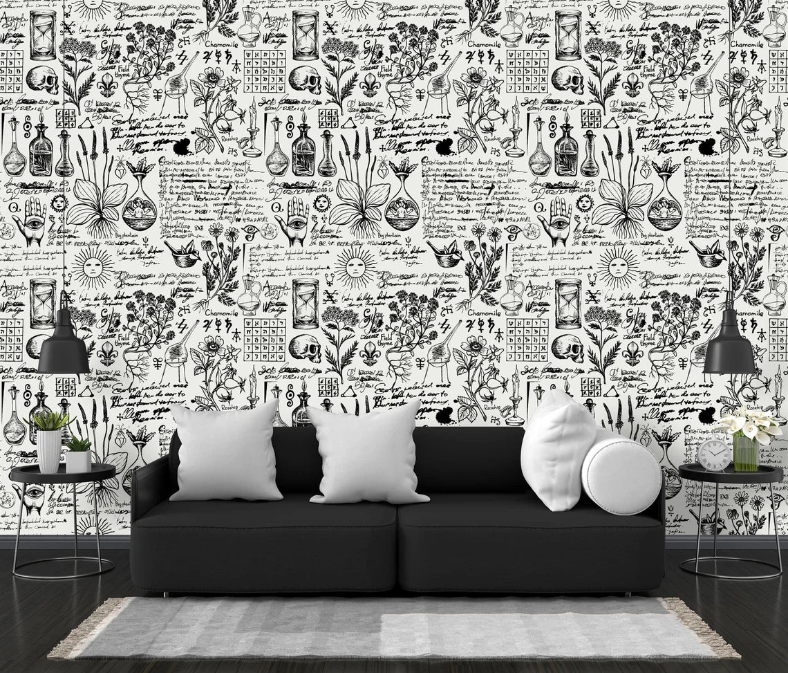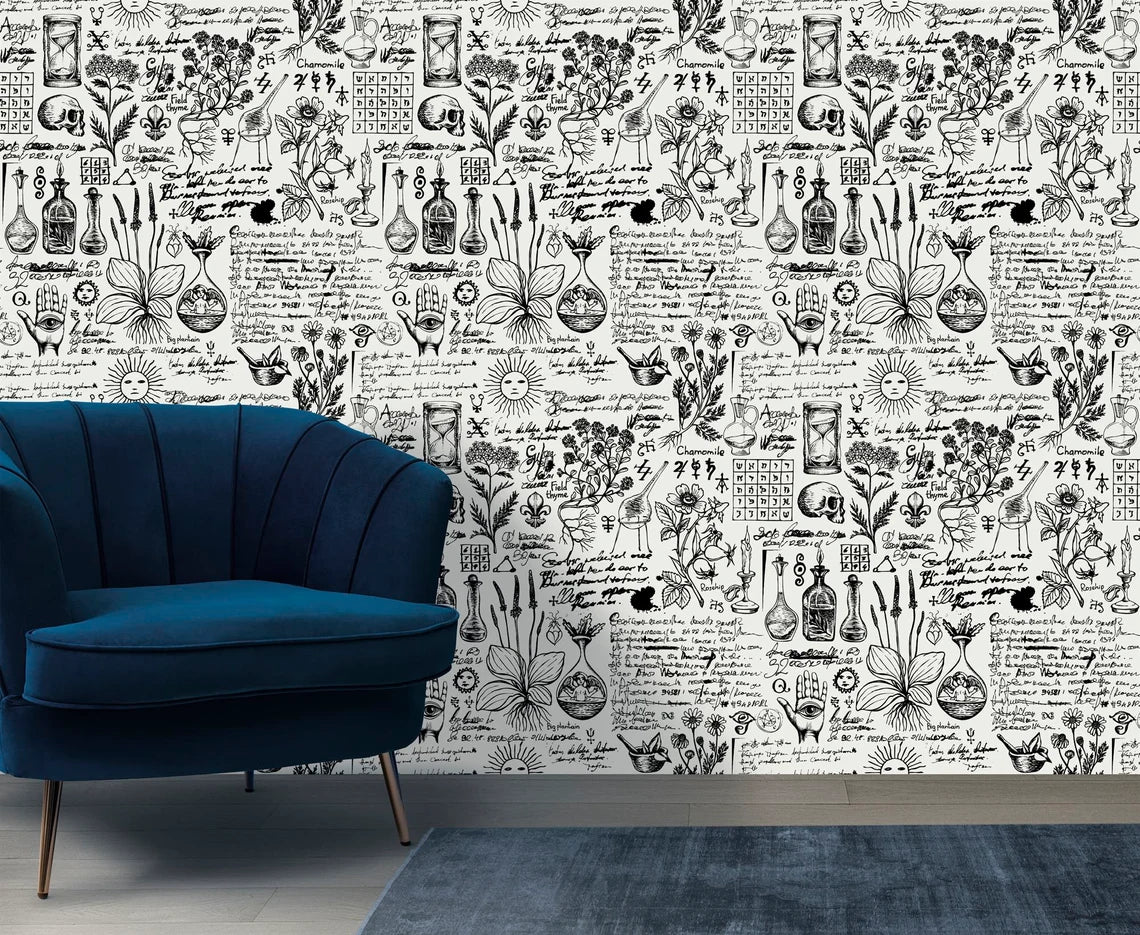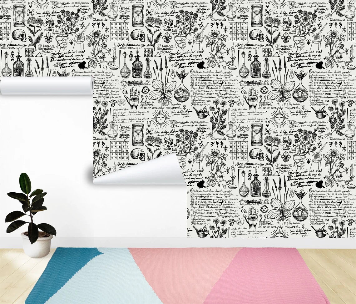 Abstract Vintage Alchemy Esoteric witchcraft Wallpaper sketches Gothic Easy-Install Wall Mural Wallpaper Peel and Stick Modern Art Washable