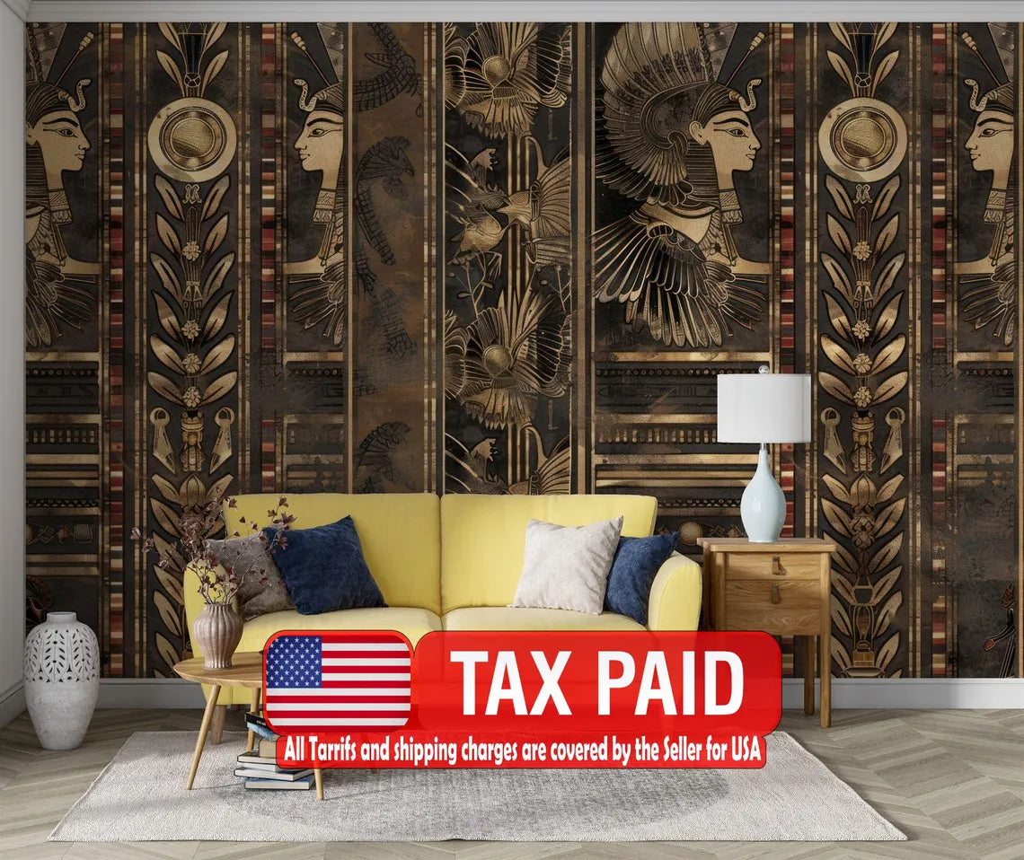 Ancient Egyptian Wall Art Pharaonic AI-Generated Wall Gift Art Print Photomural Wallpaper Mural Easy-Install Removeable Peel and Stick Decal