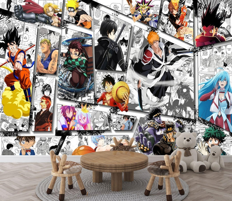Anime Manga Collage Crossover Wallpaper: Comics, Washable Removable Mural