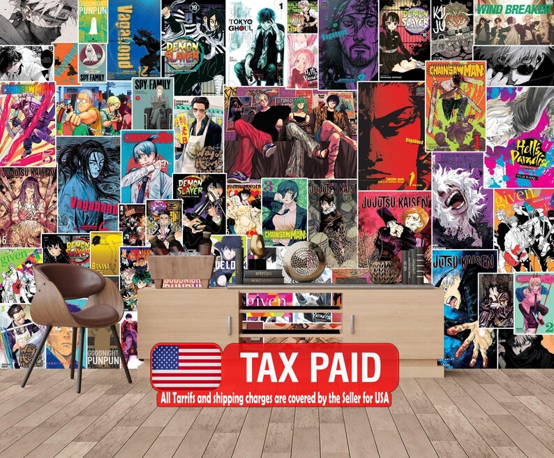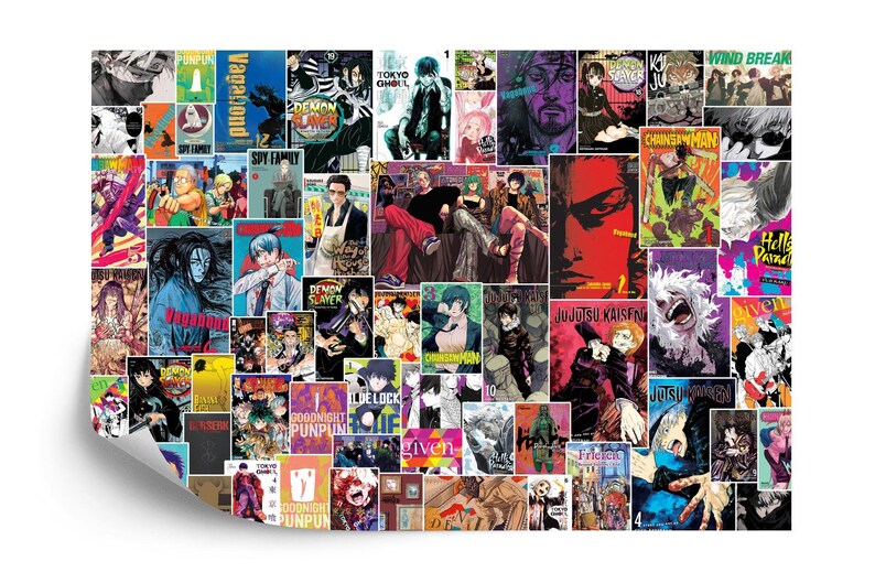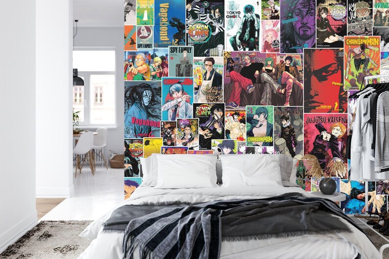 Anime Manga Collage Wallpaper, Hand-Drawn Comics Mural, Washable & Removable