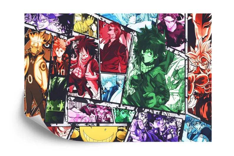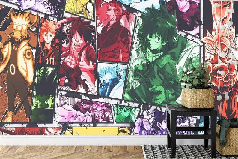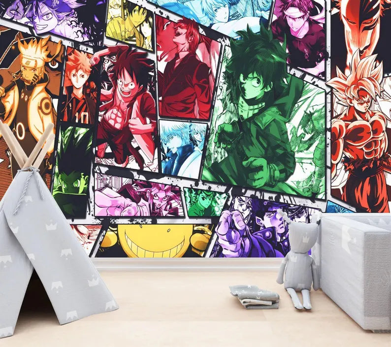 Anime Manga Collage Wallpaper, Hand-Drawn Comics Wall Mural, Peel & Stick