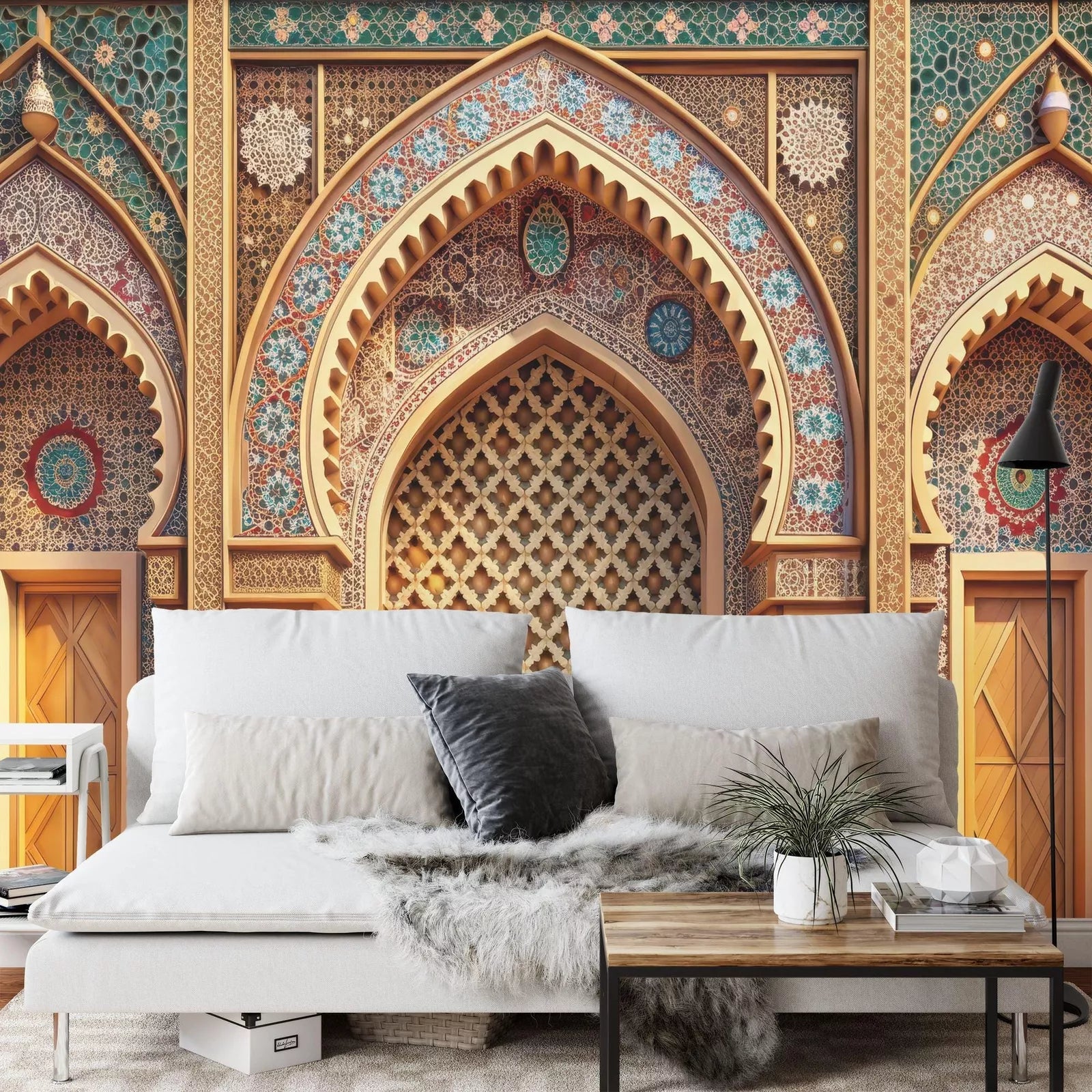 Arabian Nights Decoration Islamic Arches Gift, Art Print Photomural Wallpaper Mural Easy-Install Removeable Peel and Stick Large Wall Decal
