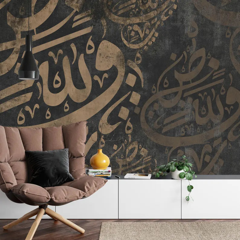 Arabic Calligraphy Wallpaper, Islamic Art Mural, Peel and Stick Decal