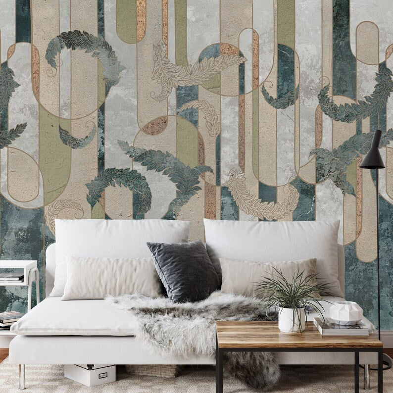 Art Deco Feather Wallpaper Mural, Neutral Colors, Peel and Stick