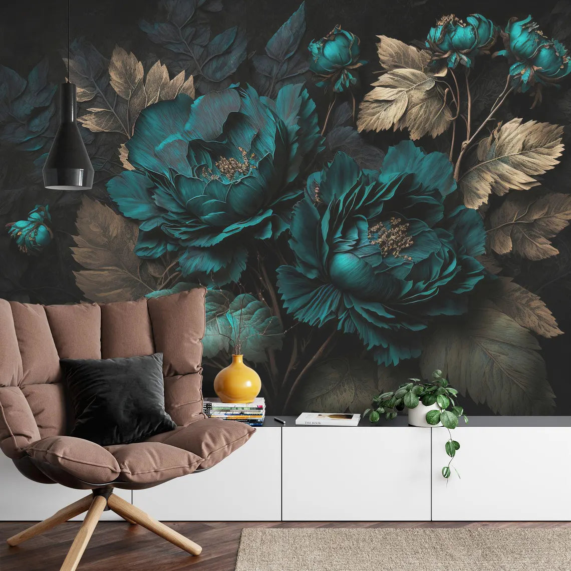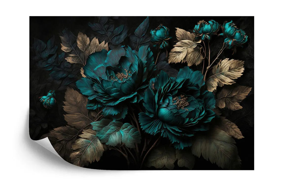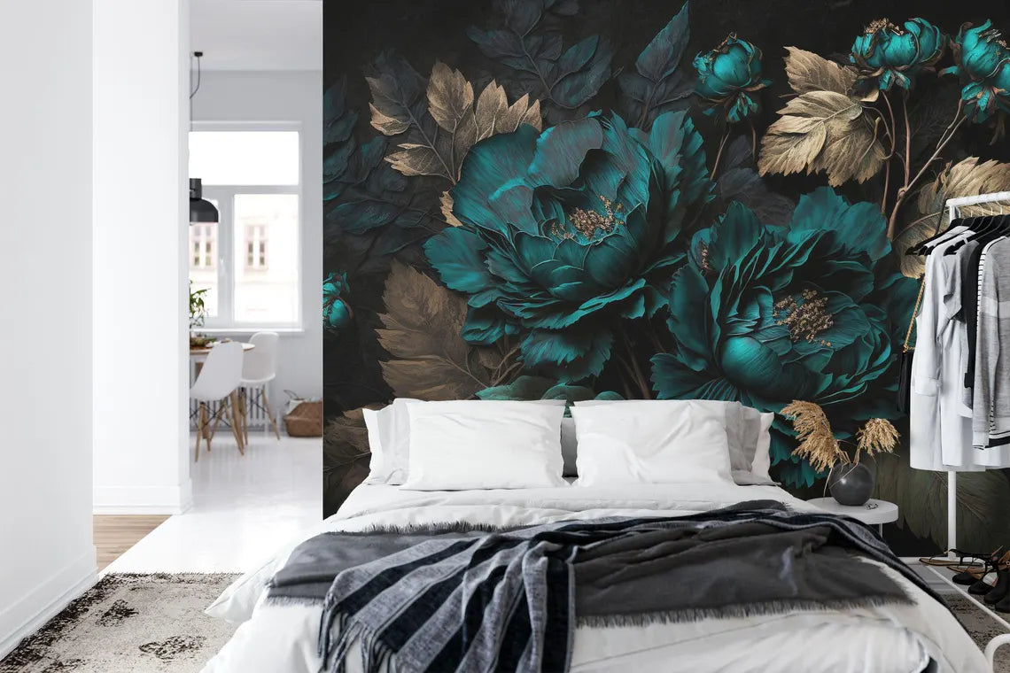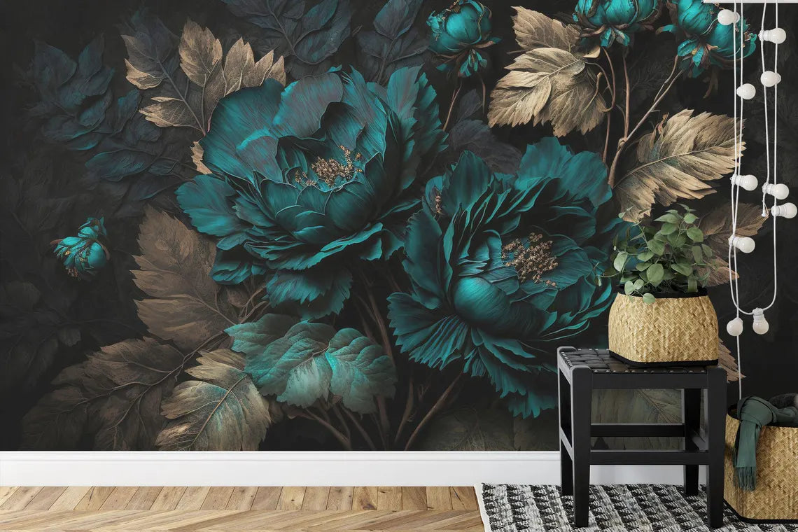 Baroque Floral Wallpaper Mural, Rich Deep Colors, Peonies, Peel and Stick