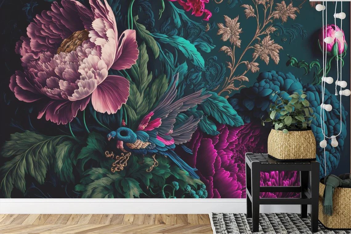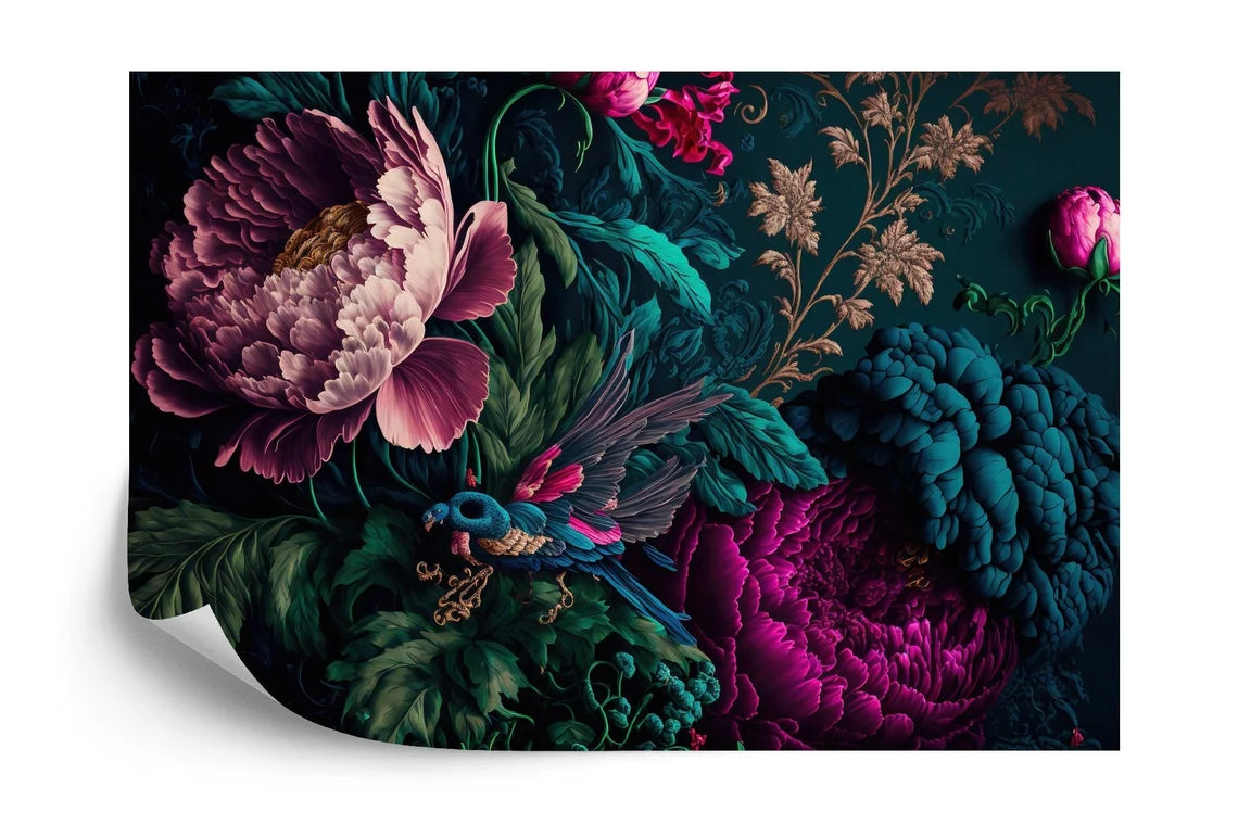 Baroque Flowers Rich Deep Colors Peonies Gift, Art Print Photomural Wallpaper Mural Easy-Install Removeable Peel and Stick Large Wall Decal