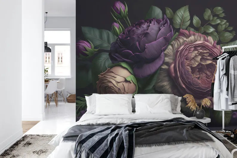 Baroque Peony Wallpaper Mural, Rich Deep Colors, Easy-Install Peel and Stick