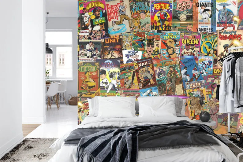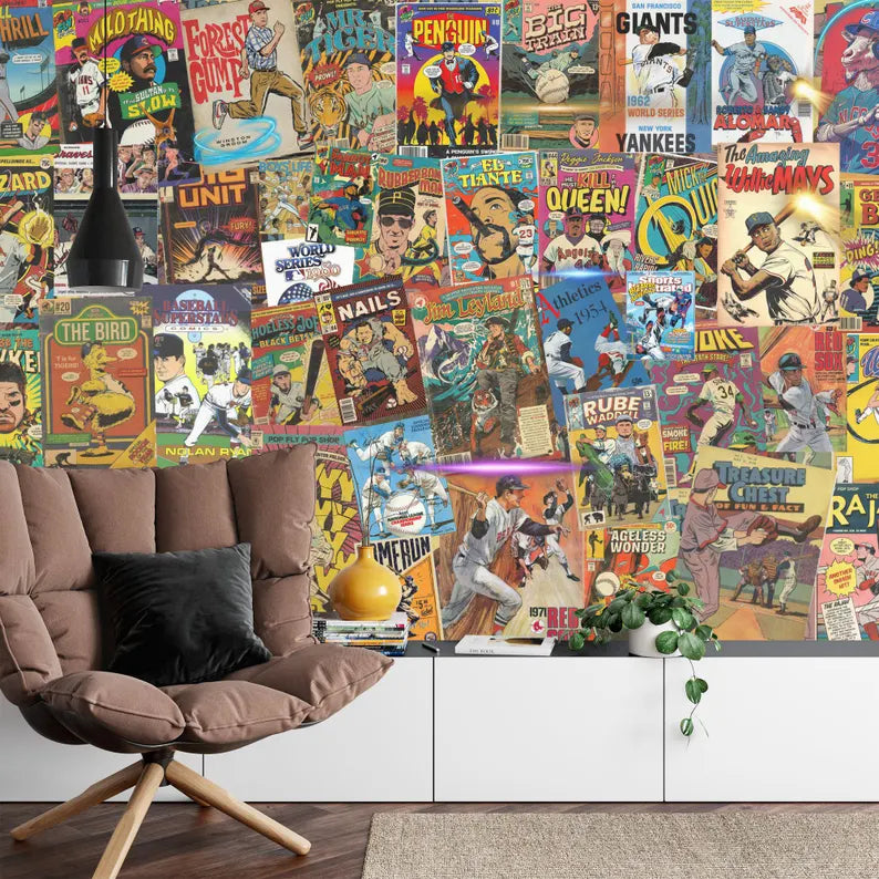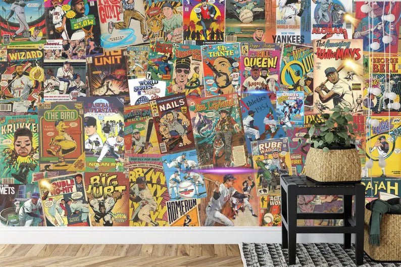 Baseball Comic Book Cover Wallpaper Mural
