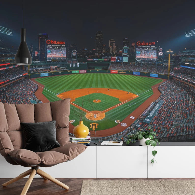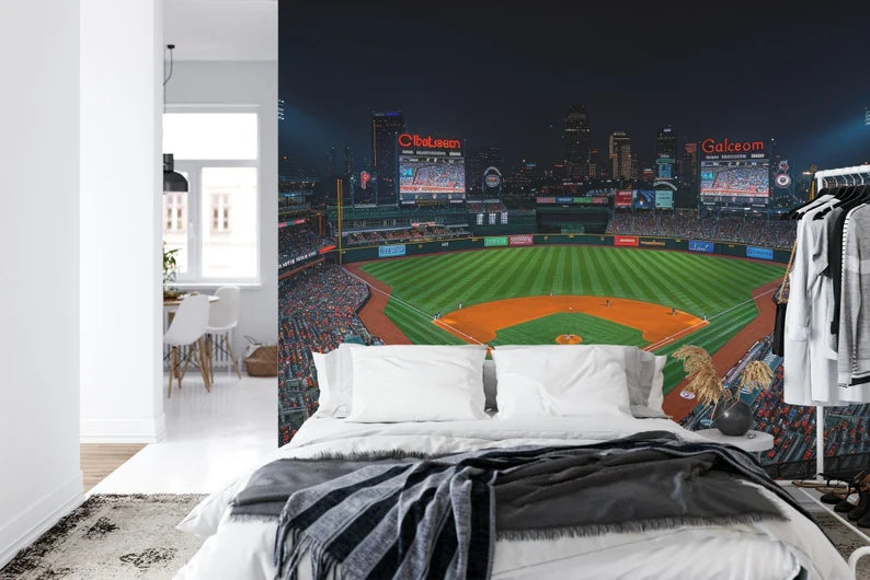 Baseball Stadium Wallpaper Mural, Kids Room Decor