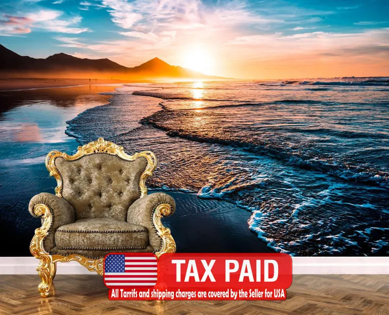 Beach Sunset Wall Mural, Nature View, Peel and Stick Wallpaper