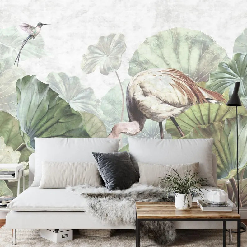 Botanical Flamingo Wallpaper Mural – Lotus Flowers