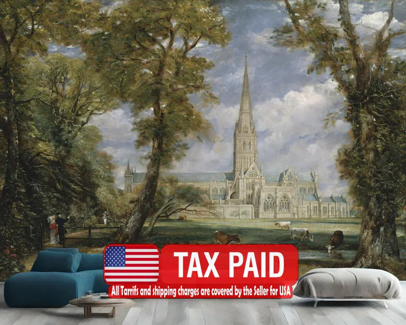 Classic Landscape Painting Wallpaper Mural, Peel and Stick Art Print