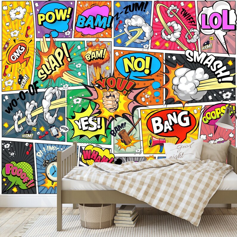 Comic Book Style Wallpaper, Kids Gaming Room Decor