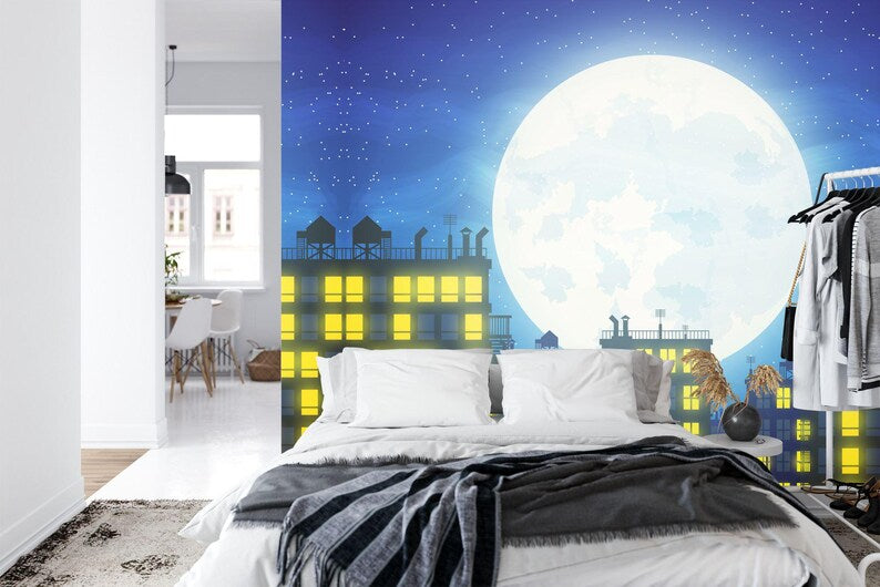 Comic Cityscape Wallpaper Mural, Kids Room Decor, Peel and Stick Decal