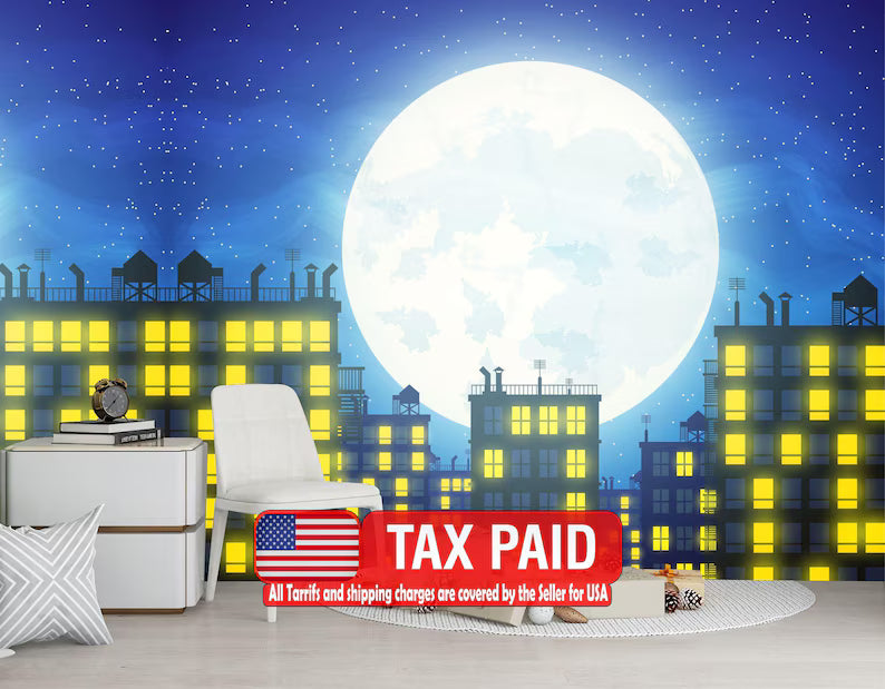 Comic Cityscape Wallpaper Mural, Kids Room Decor