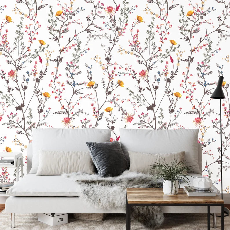 Cute Flowers Pattern Nursery Floral Decor Gift, Art Print Photomural Wallpaper Mural Easy-Install Removeable Peel and Stick Large Wall Decal