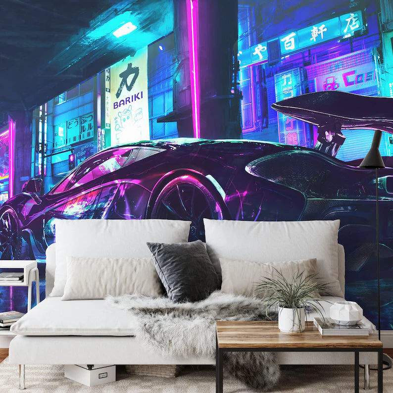 Cyberpunk Speed Car Wall Mural, Boys Room