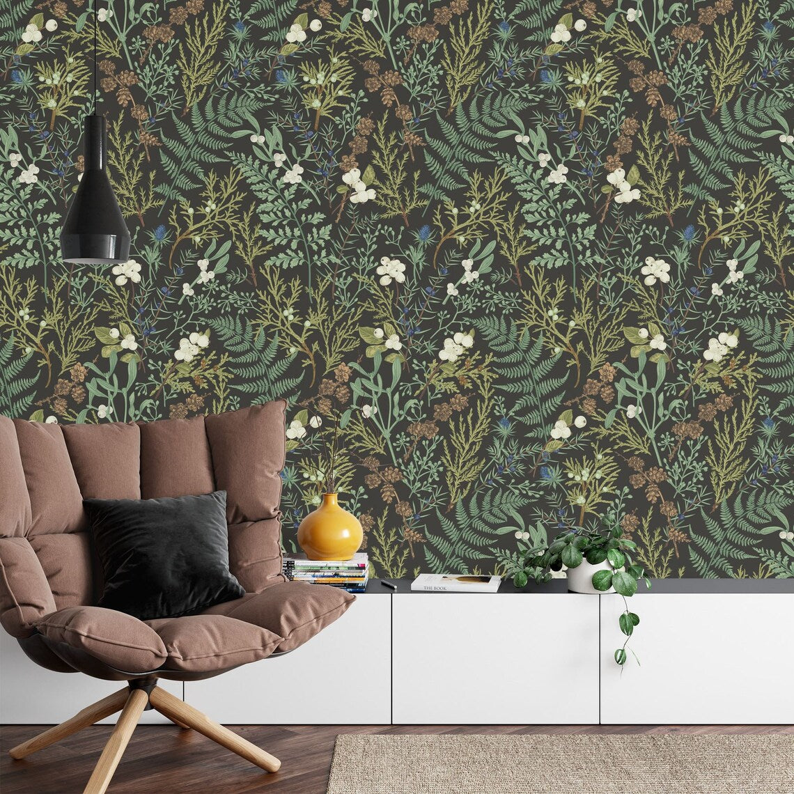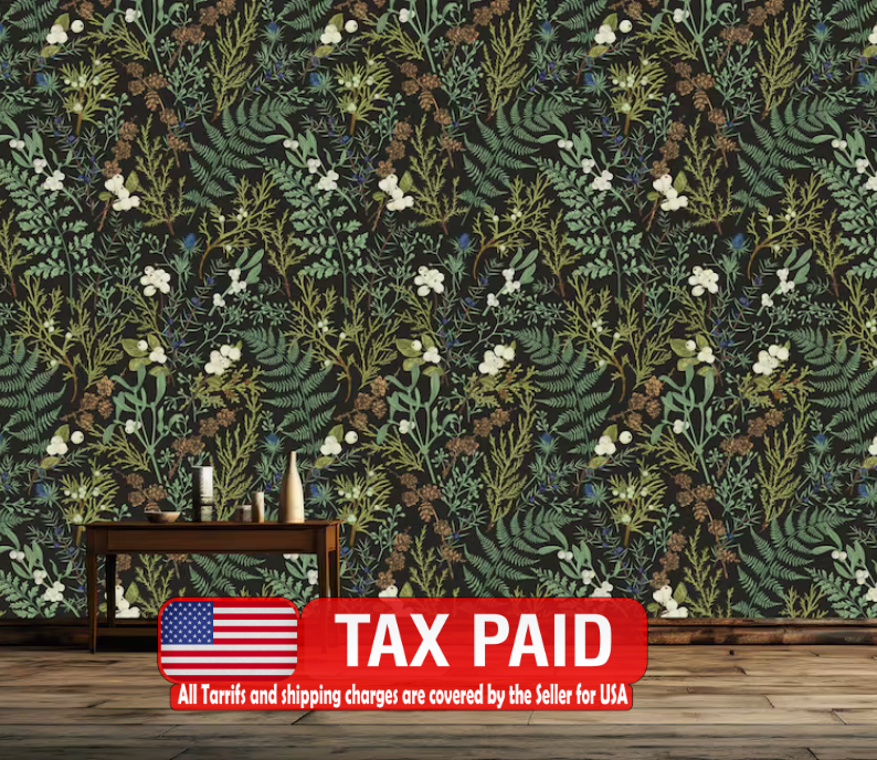 Dark Fern Botanical Wallpaper, Peel and Stick Wall Mural