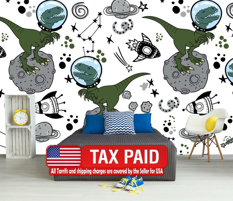 Dinosaur Space Mural, Kids Room Wallpaper