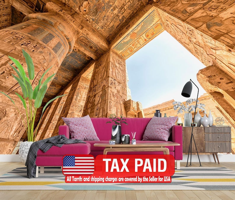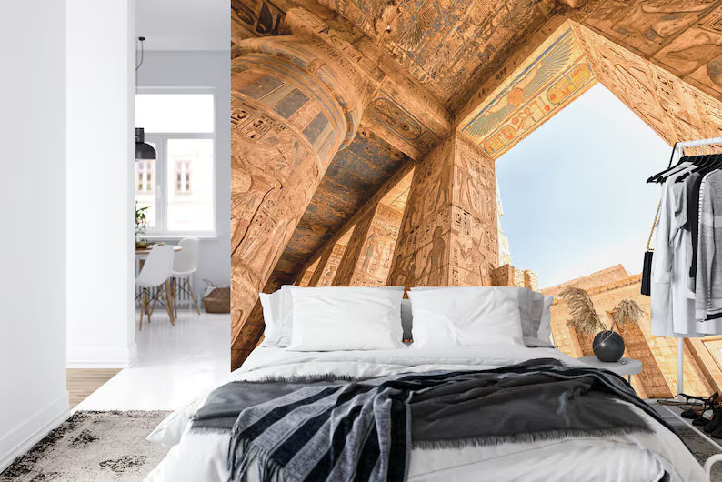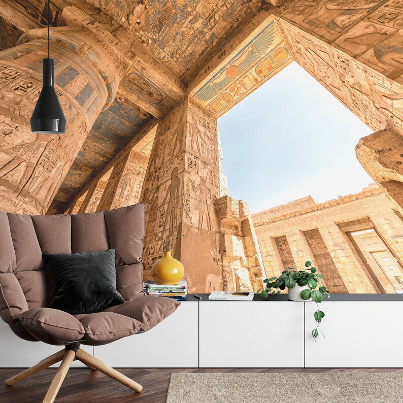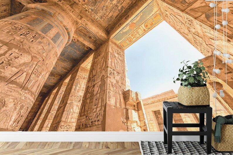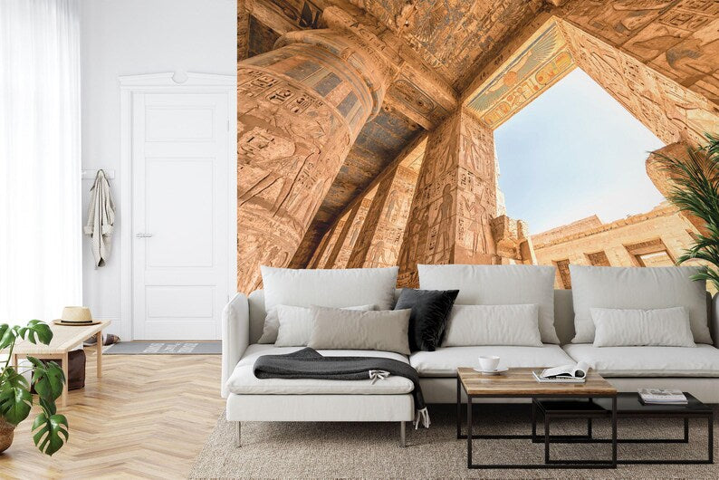 Egyptian Temple Mural, Peel and Stick Wallpaper, Ramesses III, Luxor