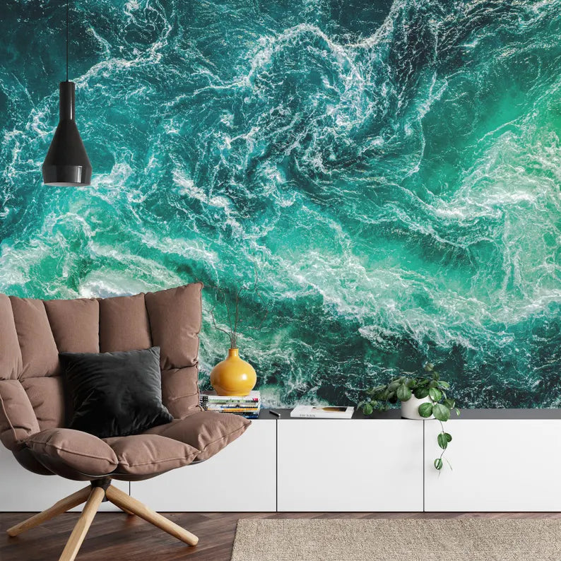 Emerald Green Ocean Waves Wallpaper Mural, Aerial View