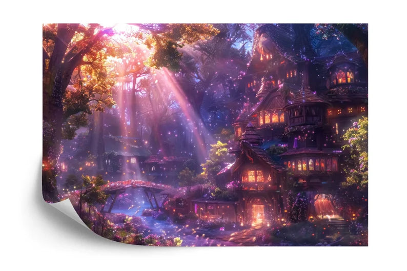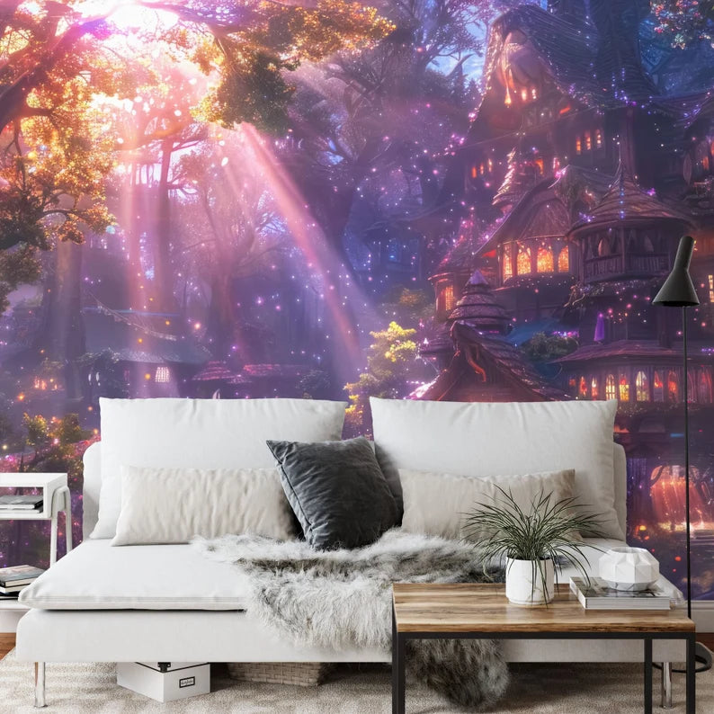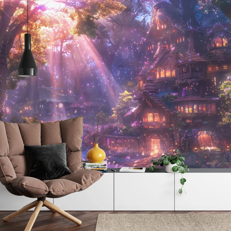 Enchanted Forest Cottage Wallpaper Mural, Peel and Stick Decal