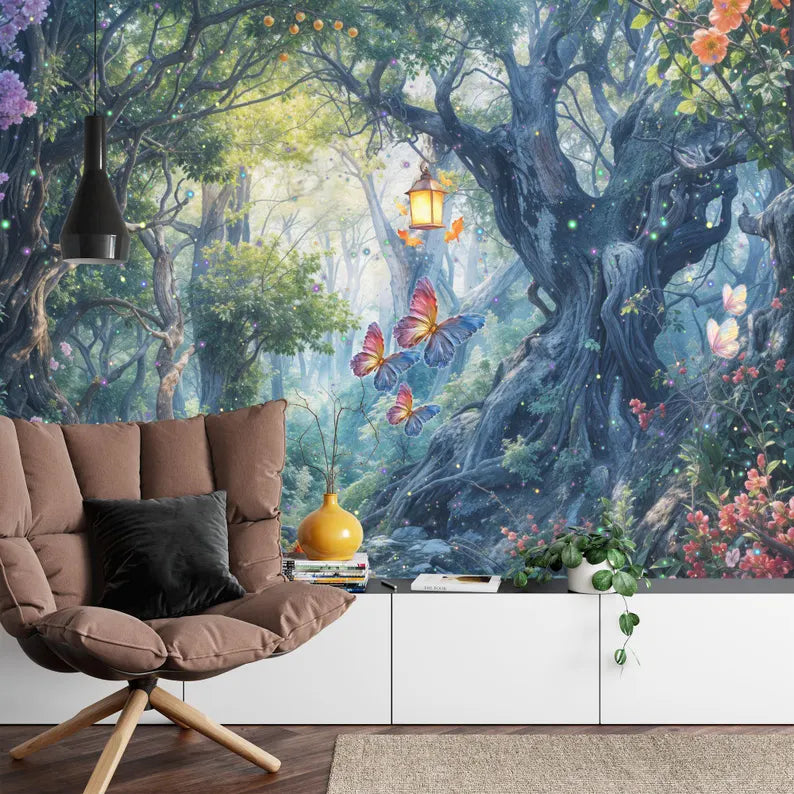 Enchanted Forest Wallpaper Mural, Peel and Stick Decal