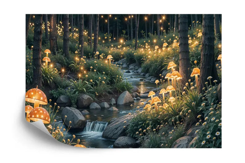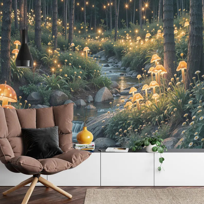 Fairytale Forest Wallpaper Mural, Magical Mushroom Lights