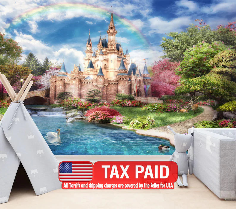 Fantasy Colorful Princess Castle Gift for Kids, Art Print Photomural Wallpaper Mural Easy-Install Removeable Peel and Stick Large Wall Decal