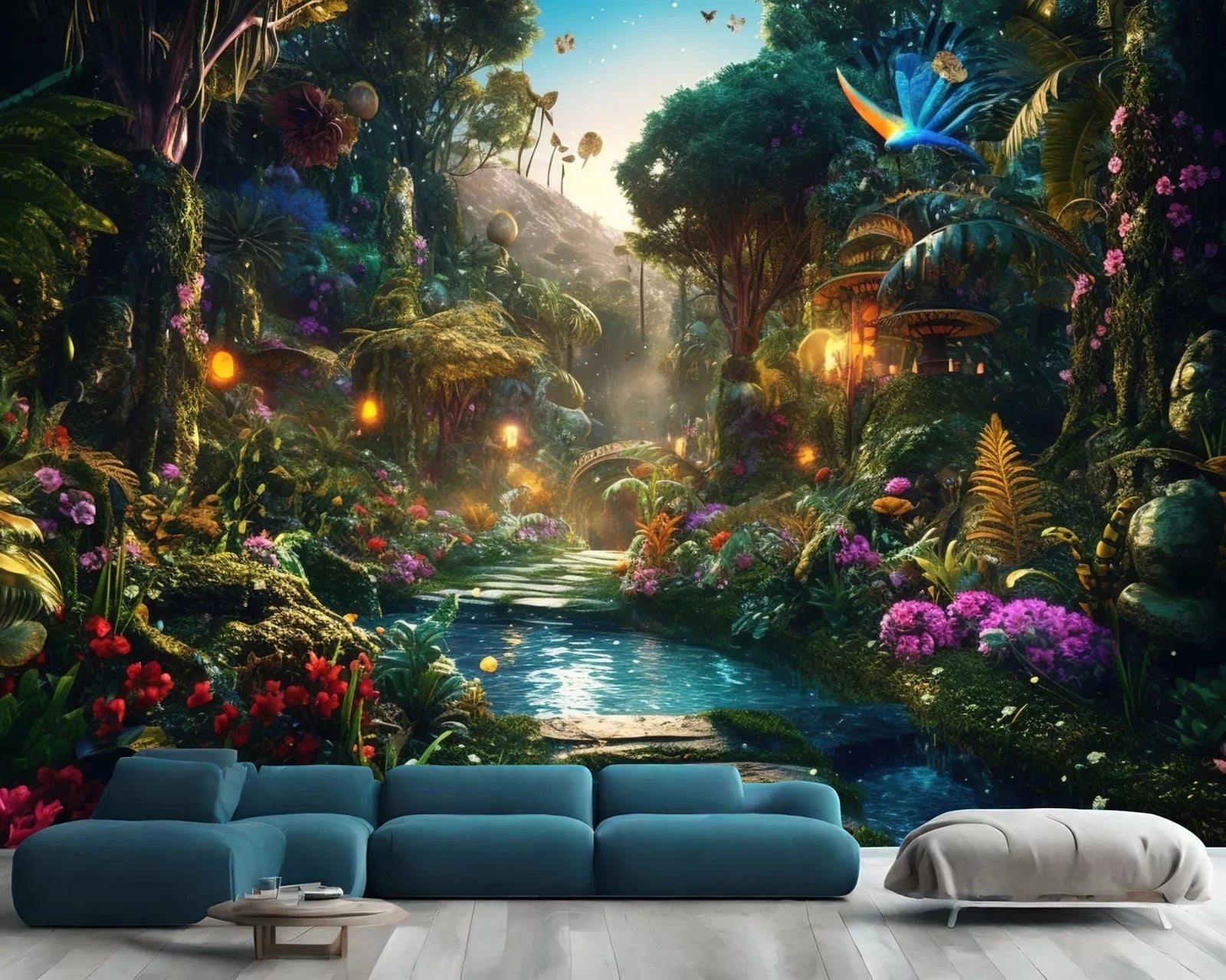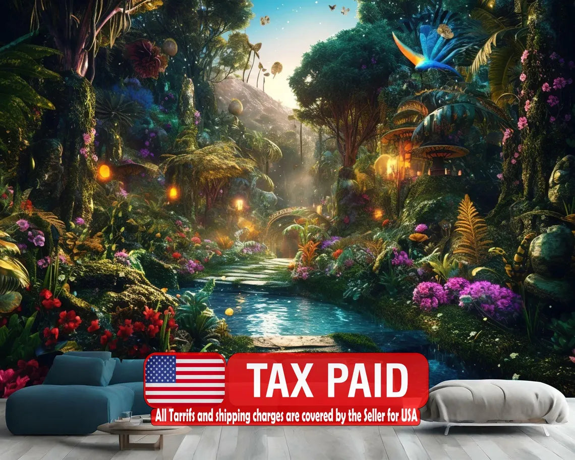 Fantasy Forest Glowing Trees Flowers Gift, Art Print Photomural Wallpaper Mural Easy-Install Removeable Peel and Stick Large Wall Decal Art