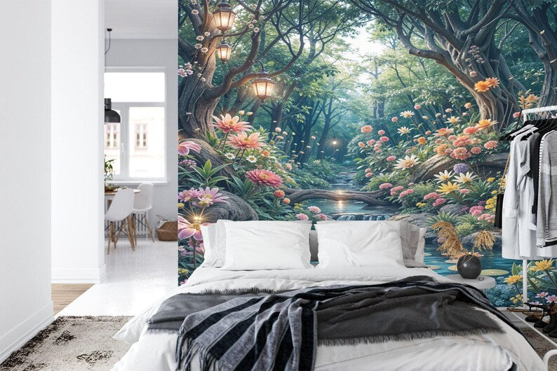 Fantasy Forest Wallpaper Mural, Purple Cyan, Peel and Stick