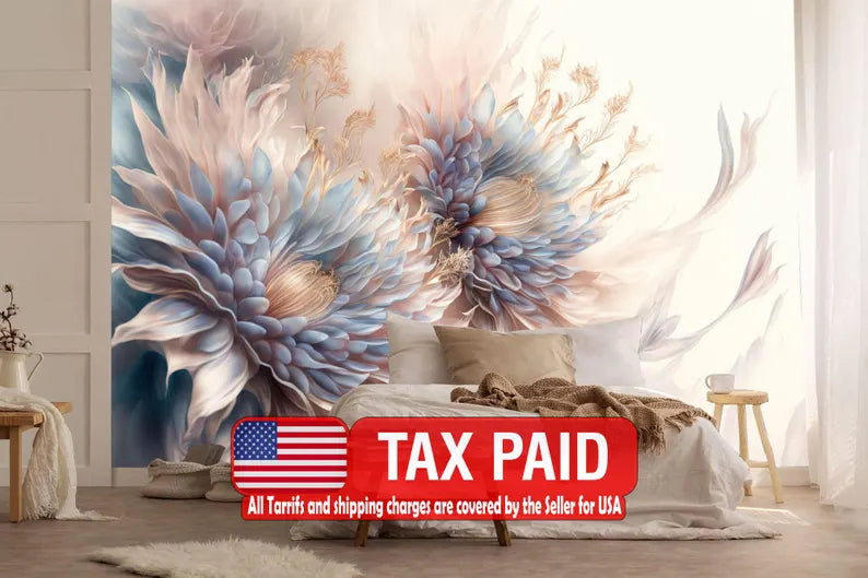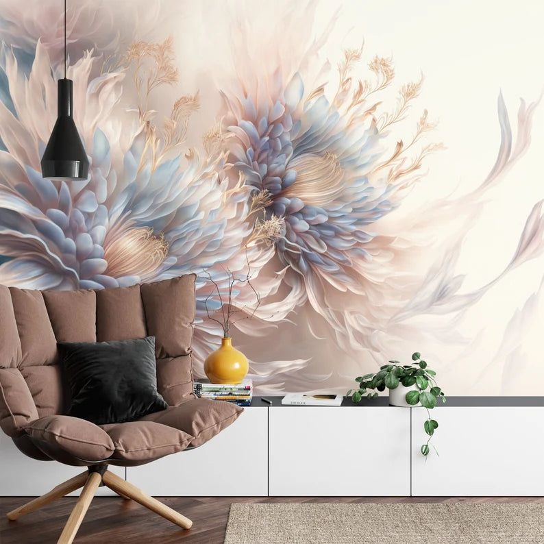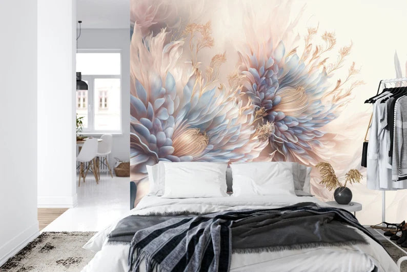 Floral Art Print Wallpaper Mural, Pastel Colors, Easy-Install Peel and Stick