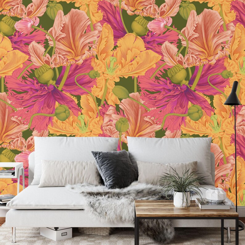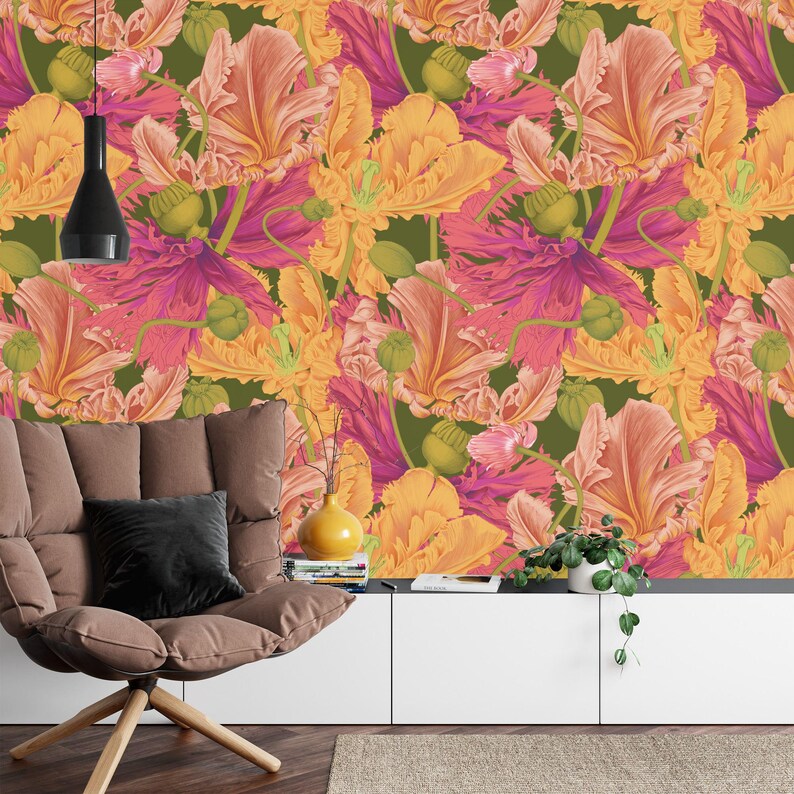 Floral Art Print Wallpaper Mural, Colorful Tulips