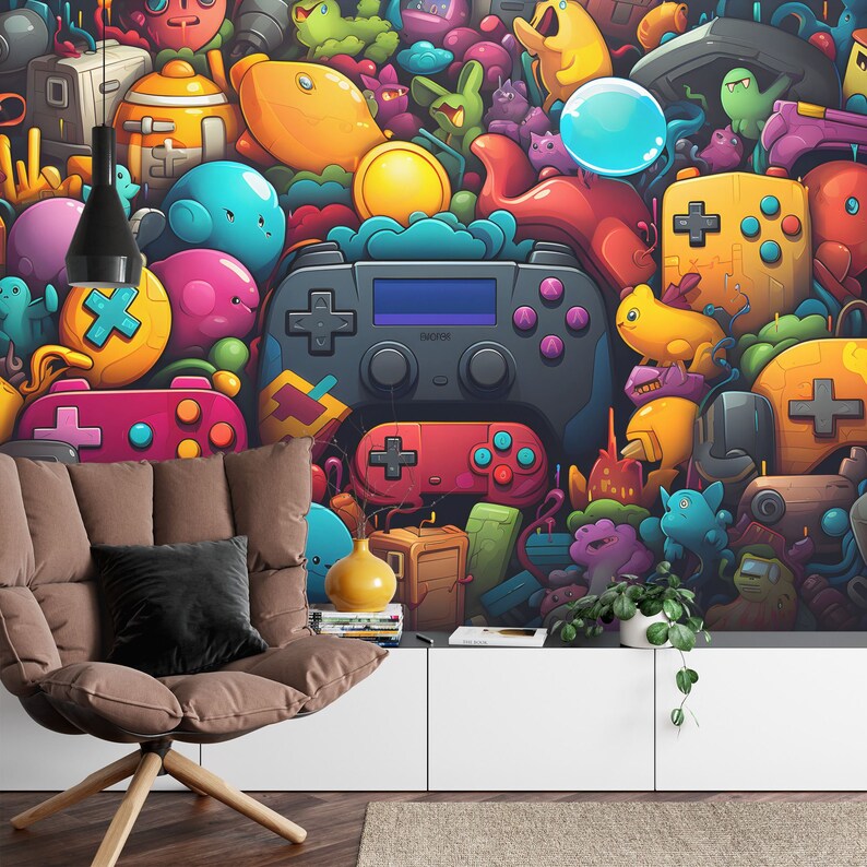 Gaming Room Wallpaper Mural, Peel and Stick Art Print