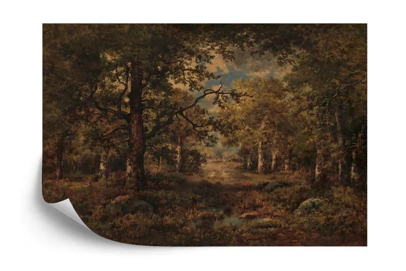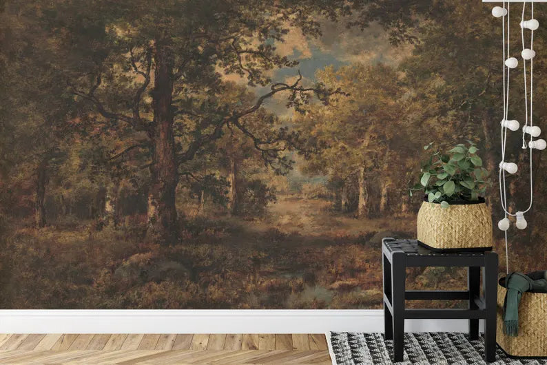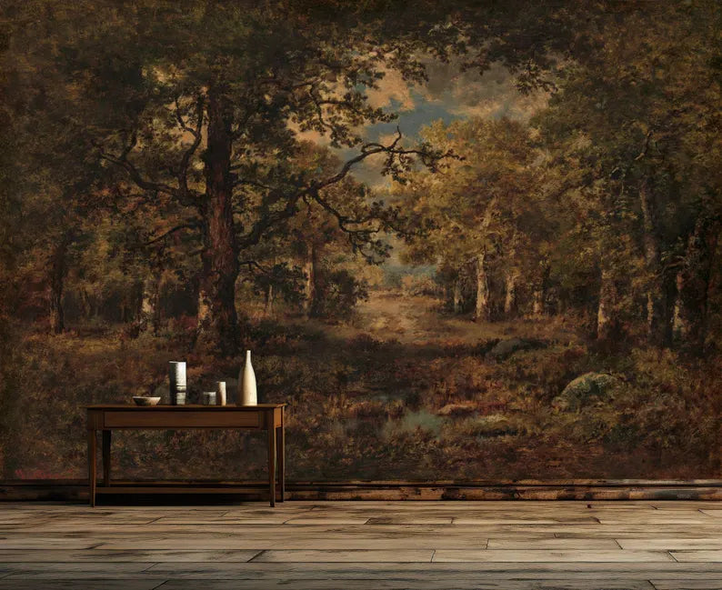 Gloomy Woodland Painting Wallpaper Mural, Peel and Stick Wall Decal