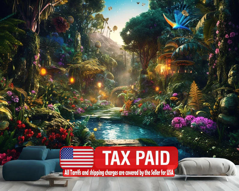 Glowing Fantasy Forest Wallpaper Mural, Peel and Stick Art Print