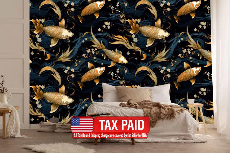 Golden Koi Fish Wallpaper Mural, Peel and Stick