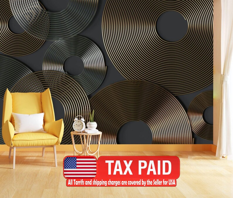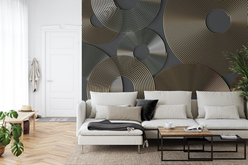 Golden Silver Spirals Wall Mural, 3D Rendering Art, Peel and Stick