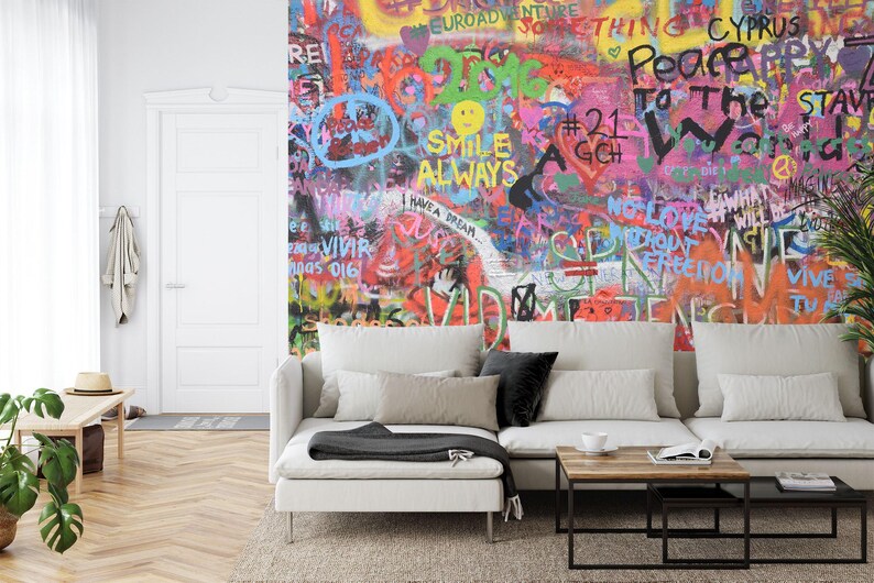 Graffiti Art Wallpaper Mural: Urban Street Style, Easy-Install Peel & Stick