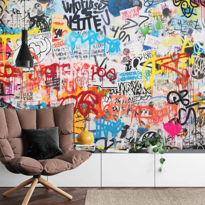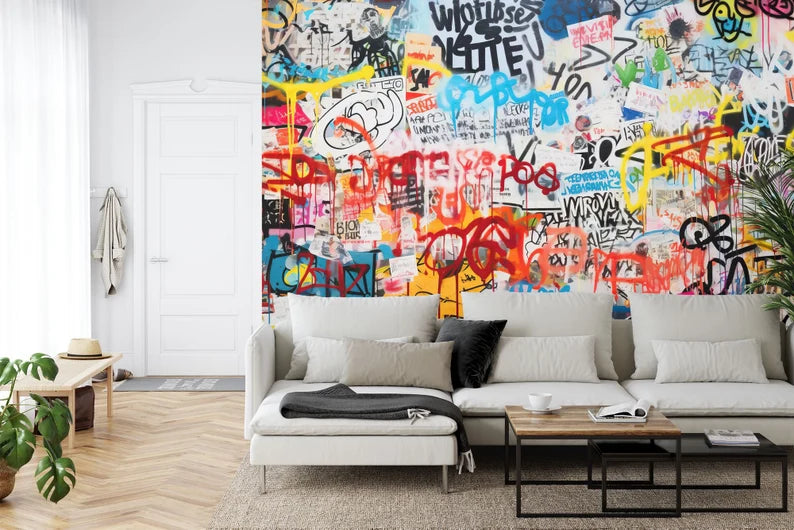 Graffiti Street Wallpaper Mural, Urban Abstract, Peel and Stick Wall Decal