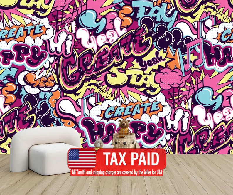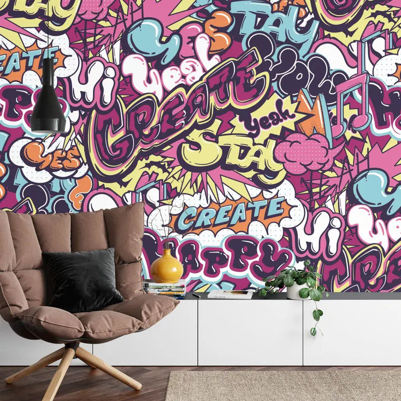 Graffiti Street Wallpaper Mural, Urban Abstract Art Print, Peel and Stick