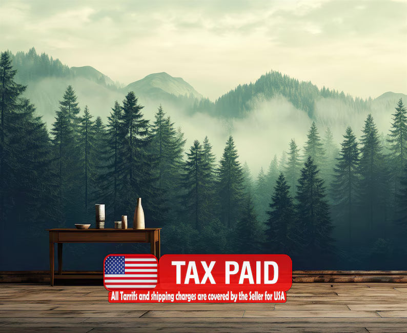 Green Foggy Forest Wallpaper Mural, Peel and Stick Wall Decal