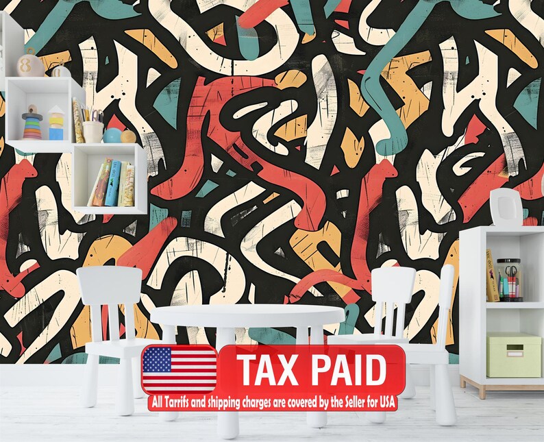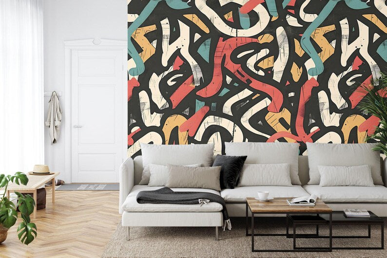 Grunge Graffiti Wall Decal, Vivid Teen Room Art, Easy Install