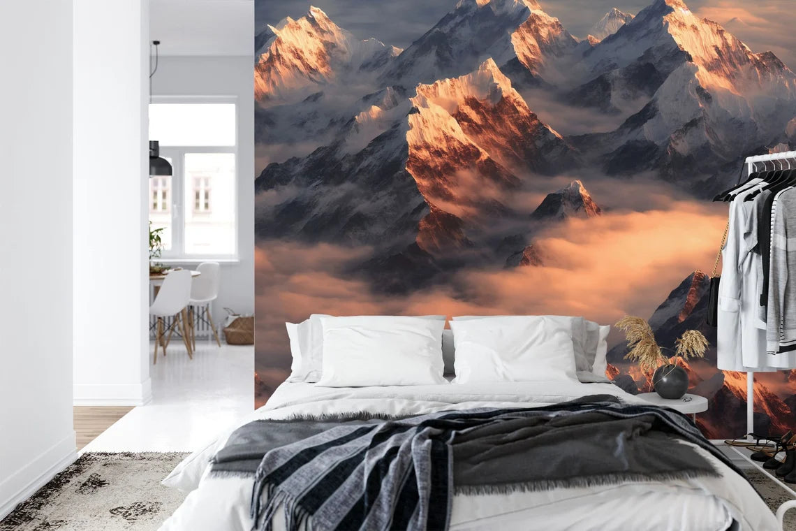 Himalayas View on Foggy Sunset Night Everest Gift, Art Print Photomural Wallpaper Mural Easy-Install Removeable Peel and Stick Large Decal