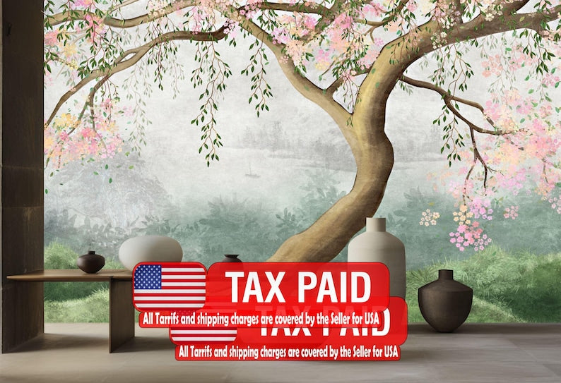 Japanese Flowering Tree Wallpaper Mural, Peel and Stick Decal