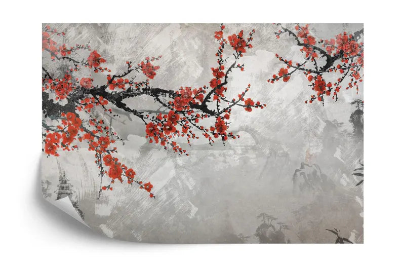 Japanese Sakura Branches Wall Mural, Peel and Stick Wallpaper