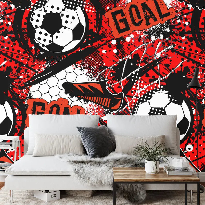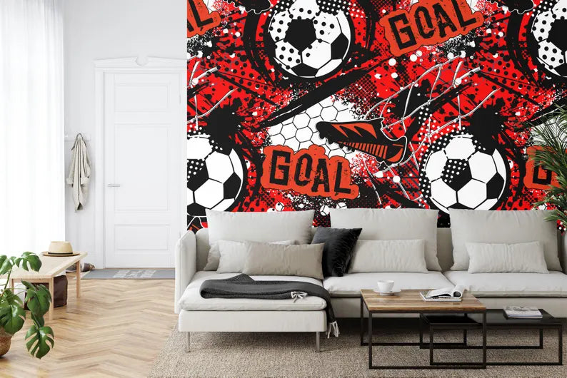 Kids Football Soccer Wallpaper Mural, Boys Room Decor, Peel and Stick